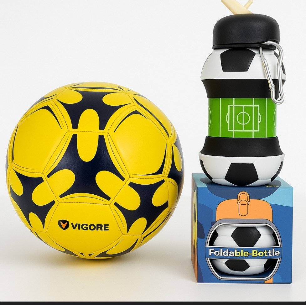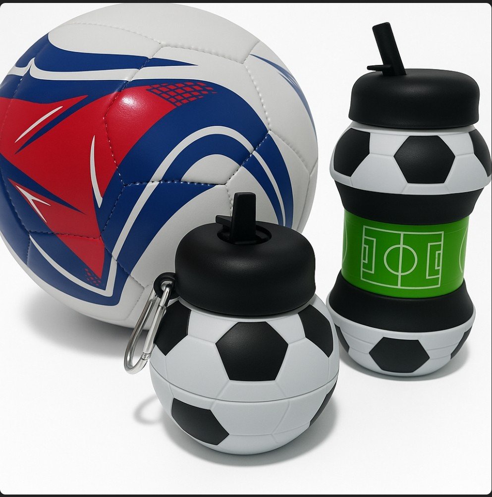 Incluye Pelota + Botella de silicona con forma de pelota de fútbol.